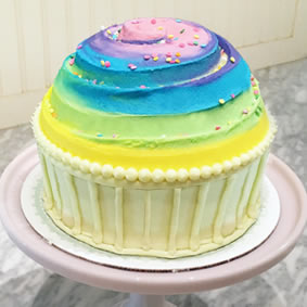 軽い食感のケーキ生地に、コクのあるバニラバタークリームをトッピング、通常のカップケーキサイズの約3倍ほどのケイのケーキスペシャルバージョンの大きなカップケーキです。